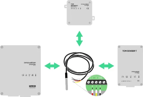 TCM Sensor T wyposażony w moduł GSM i kartę SIM automatycznie przesyła pomiary temperatury do panelu online.