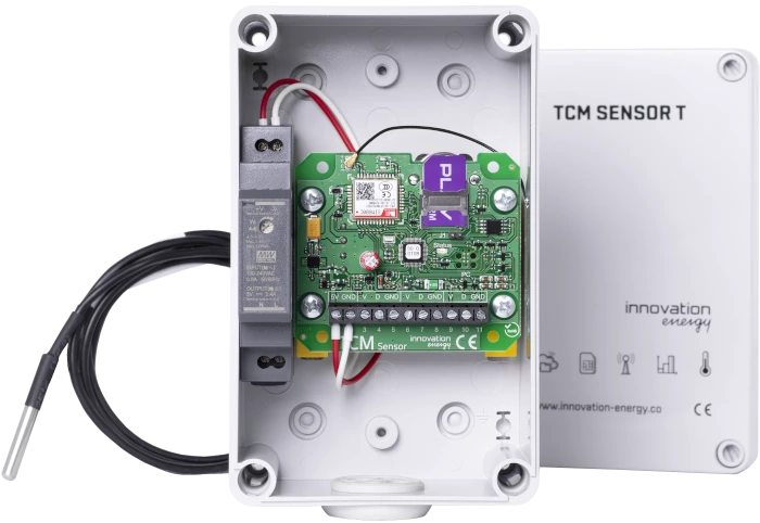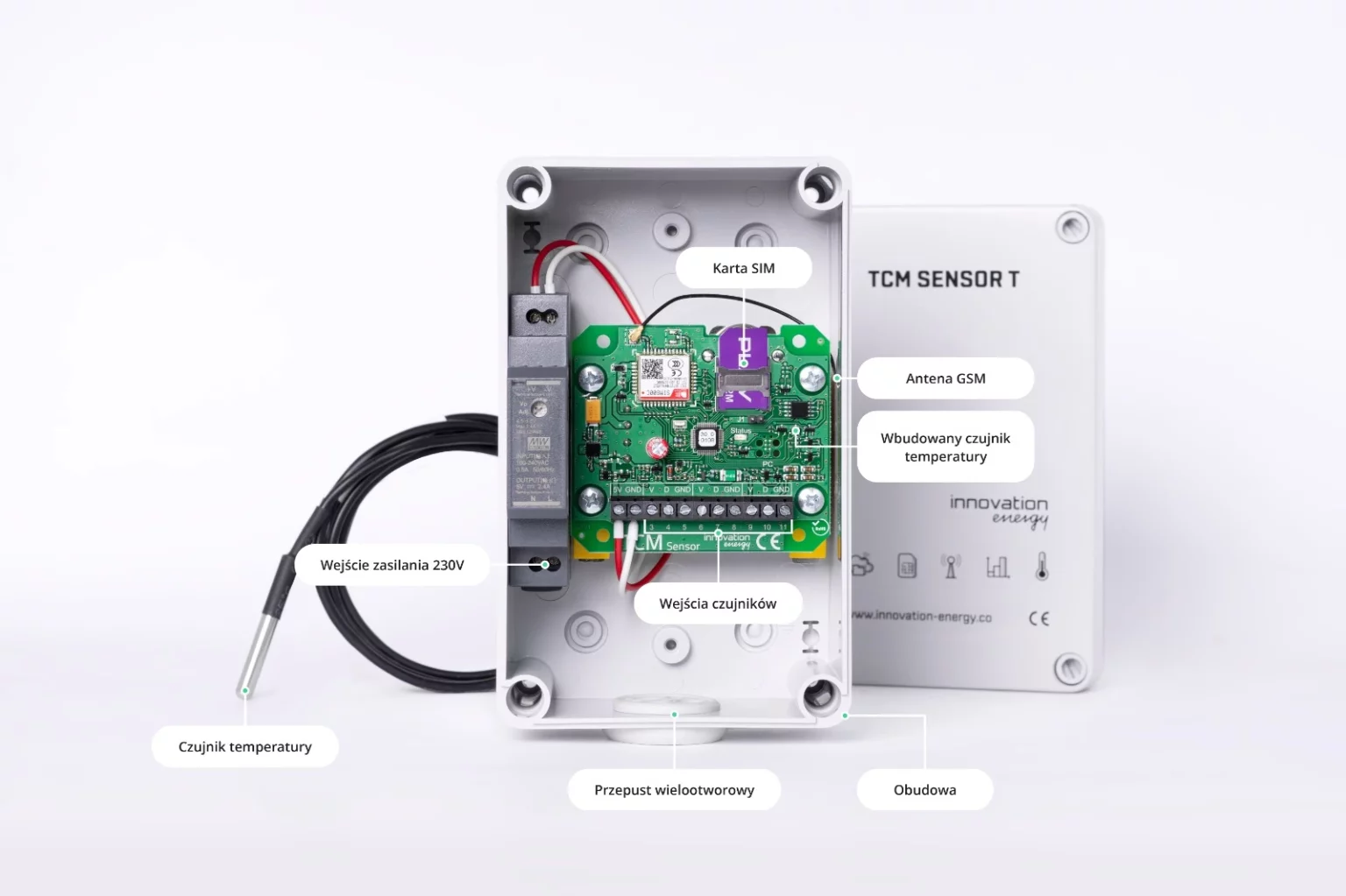TCM Sensor T wyposażony w moduł GSM i kartę SIM automatycznie przesyła dane pomiarowe do panelu online.