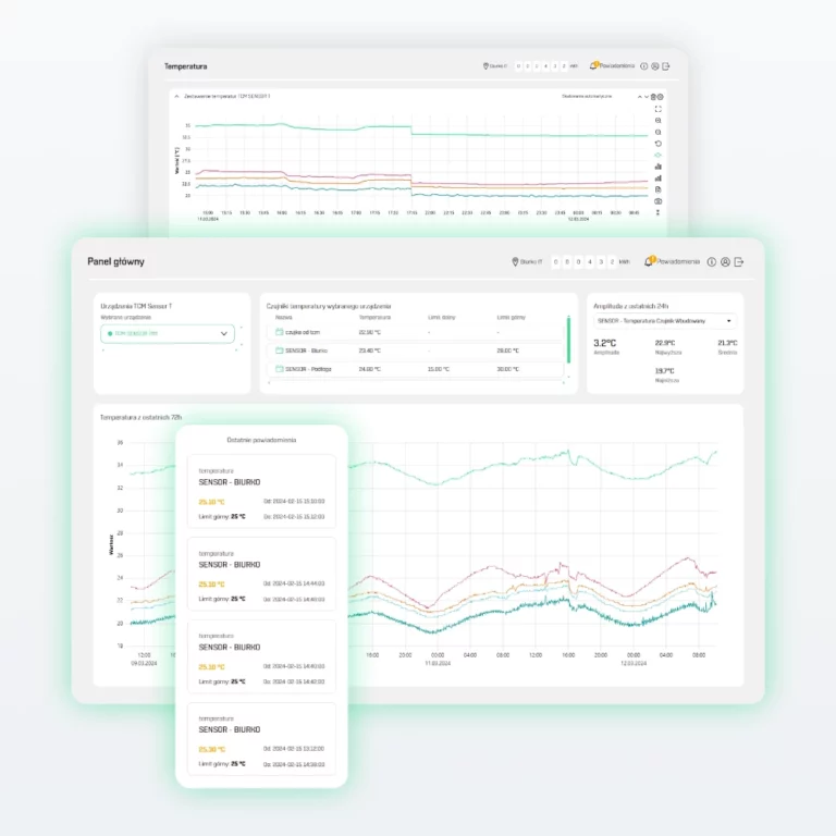 Panel zapewnia stały dostęp do wyników i analiz z podłączonych czujników, umożliwiając monitorowanie warunków w czasie rzeczywistym.