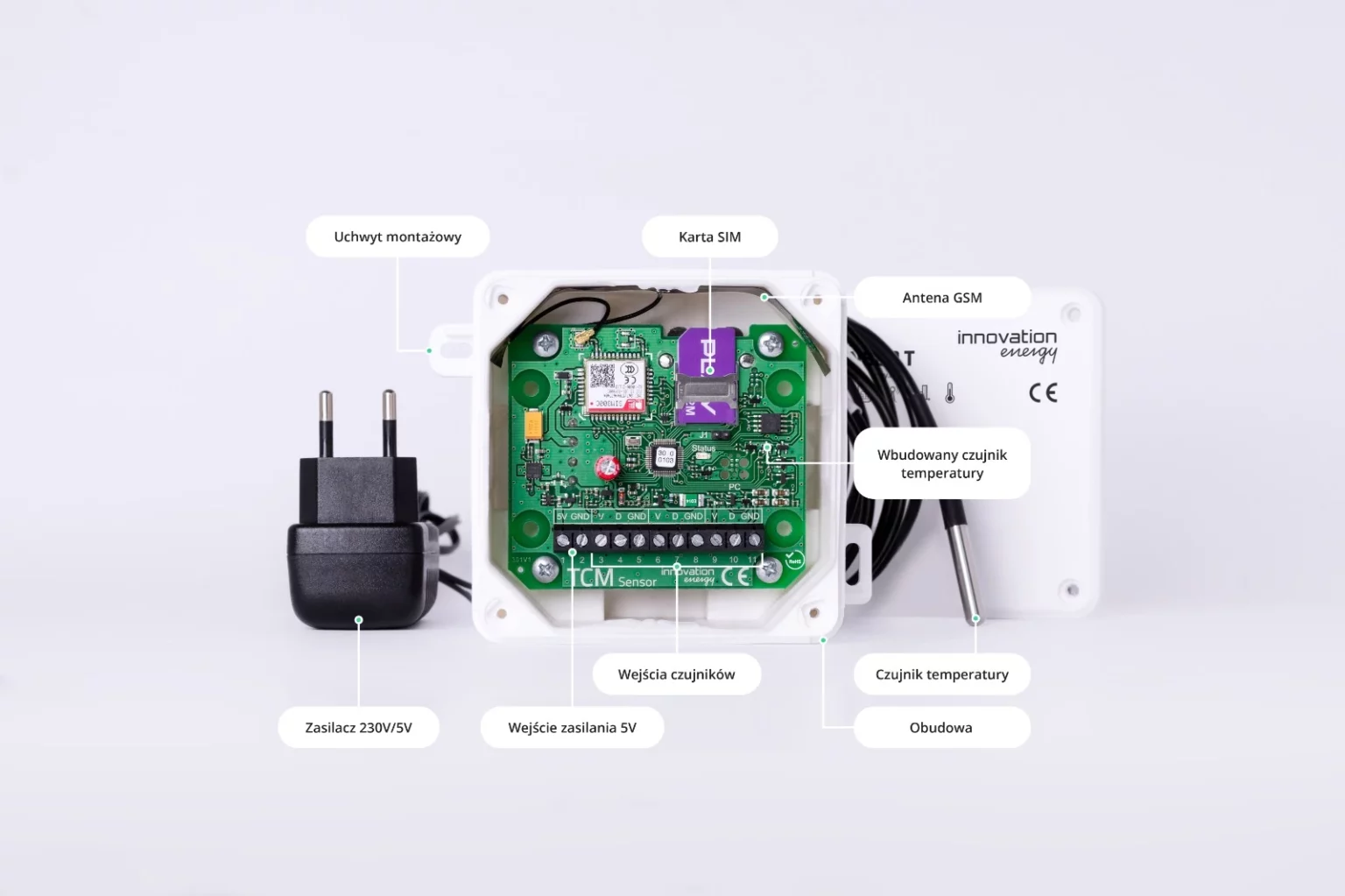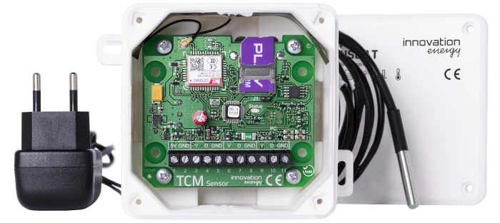 TCM Sensor T wyposażony w moduł GSM i kartę SIM automatycznie przesyła pomiary temperatury do panelu online.